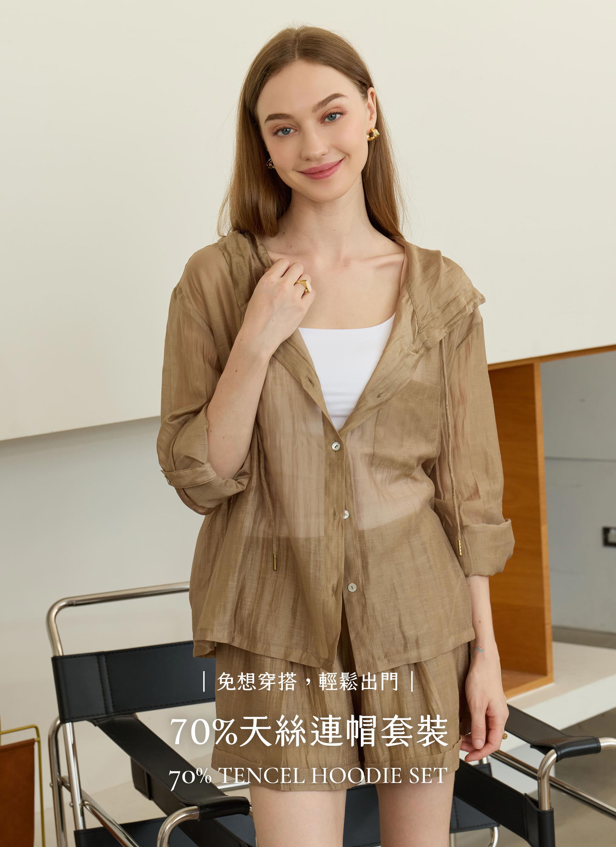 70%天絲連帽防曬套裝 2色(白色現貨)