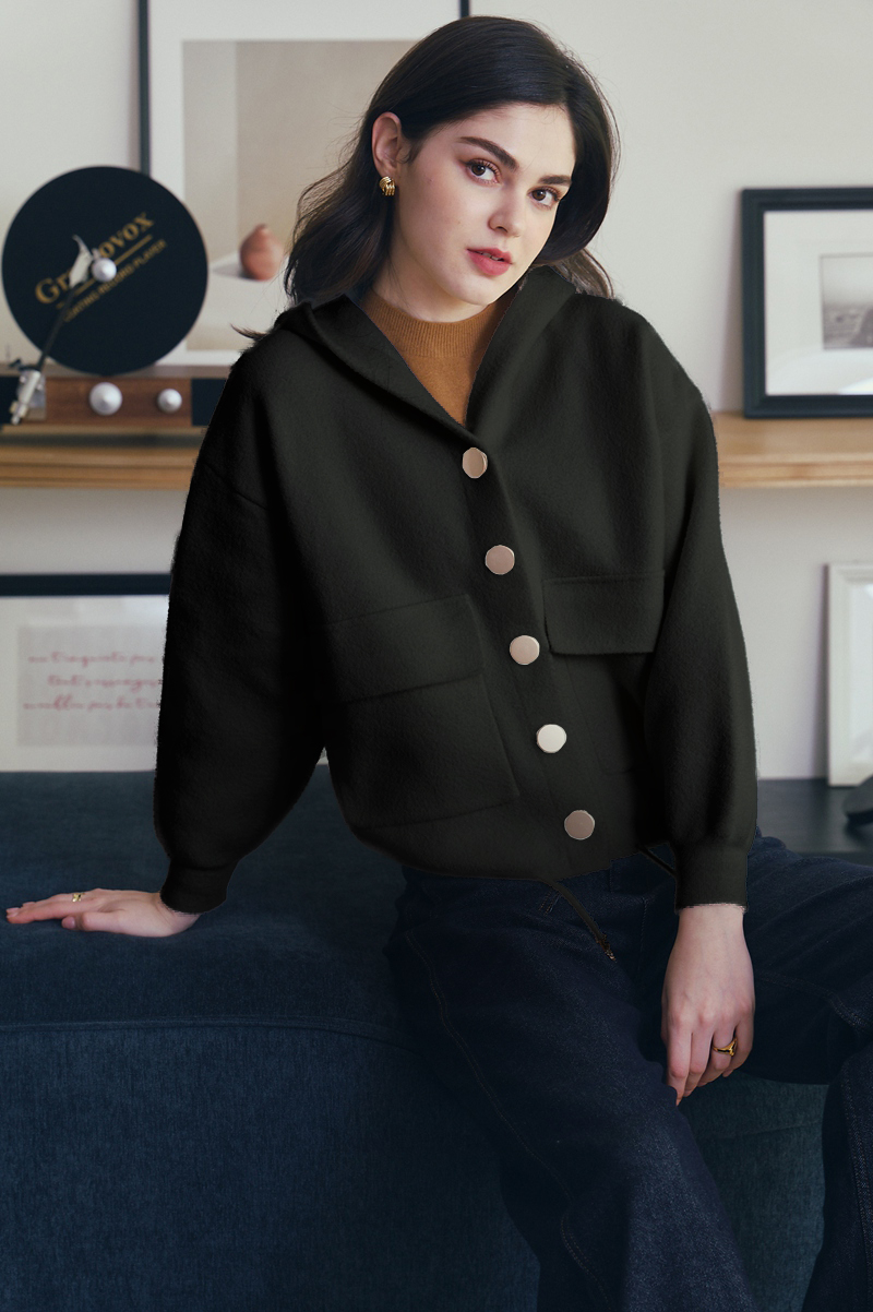 千層絲絨白帽金釦外套(只剩黑色現貨)