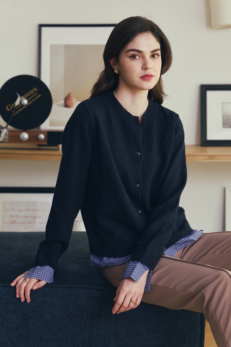 設計羊毛混紡拼接格毛衣 2色(只剩深藍現貨)