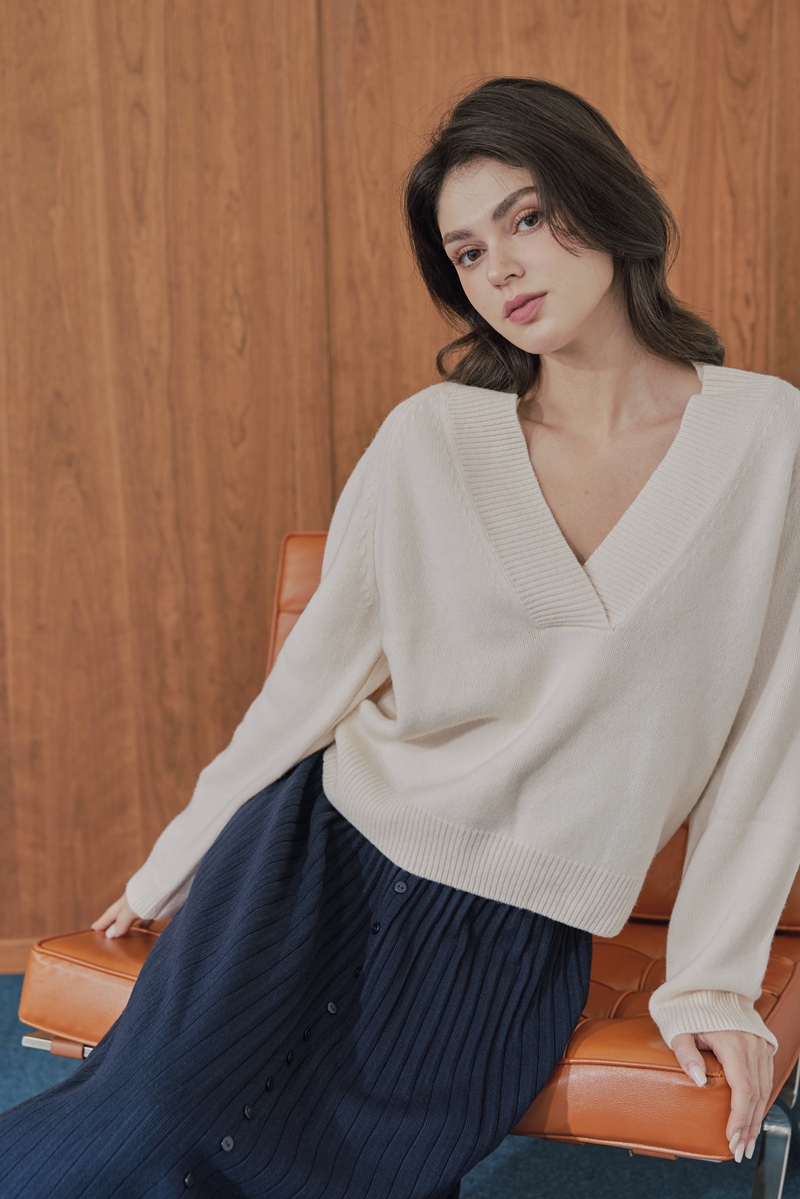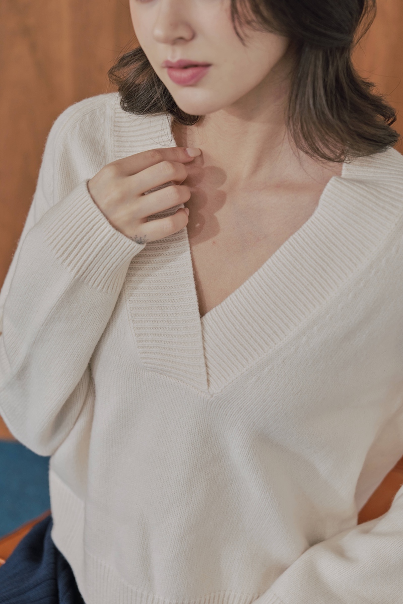 100%綿羊毛大V領毛衣 (現貨)