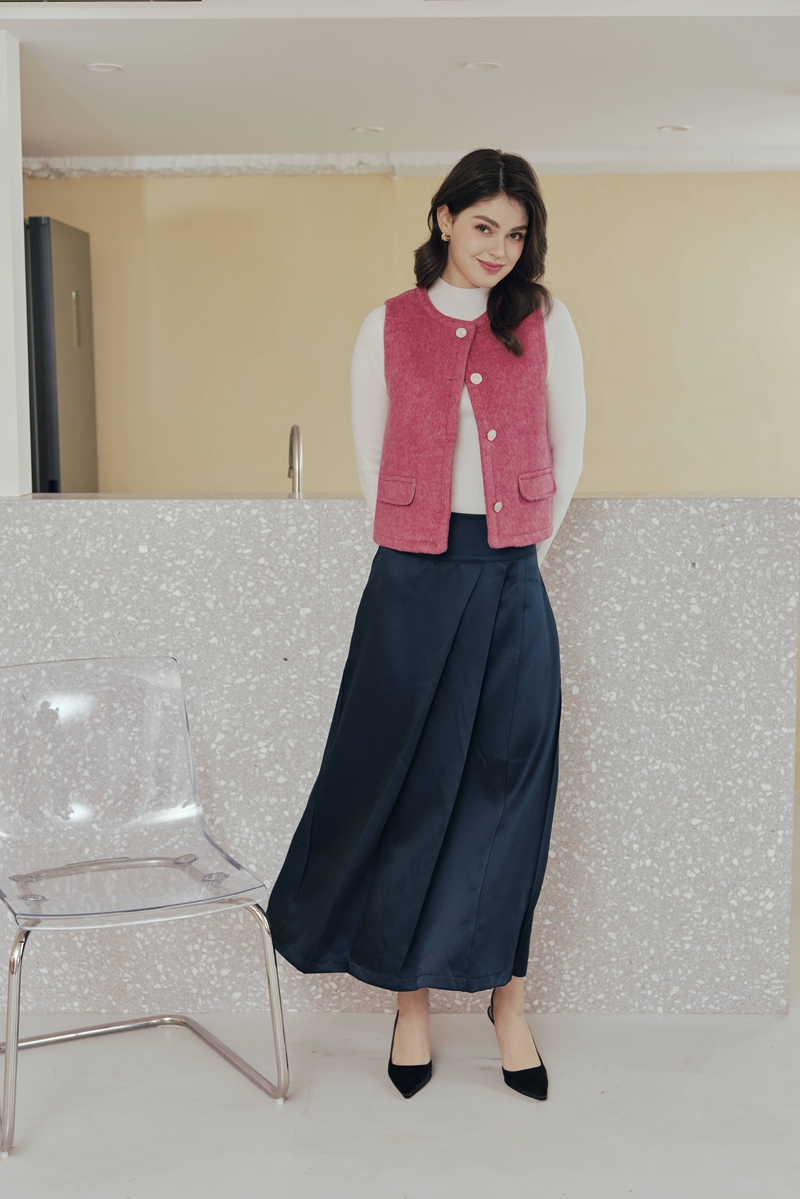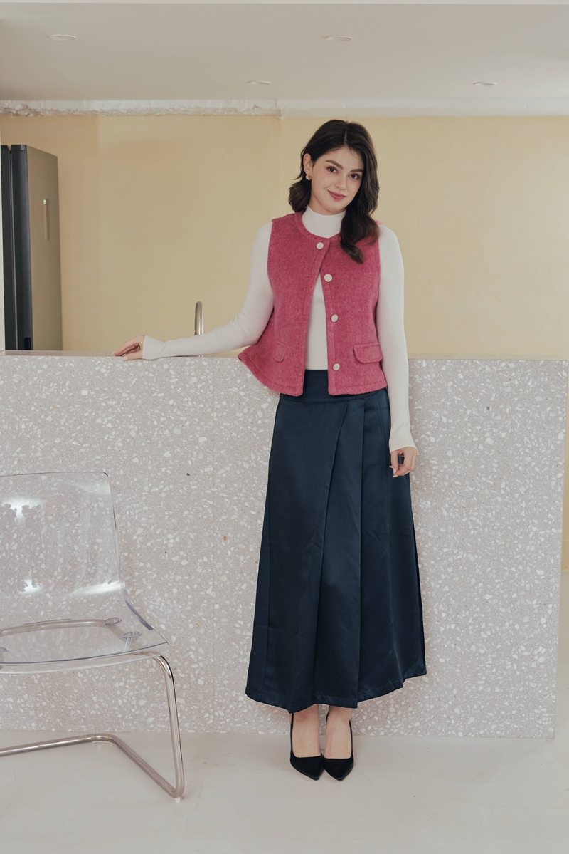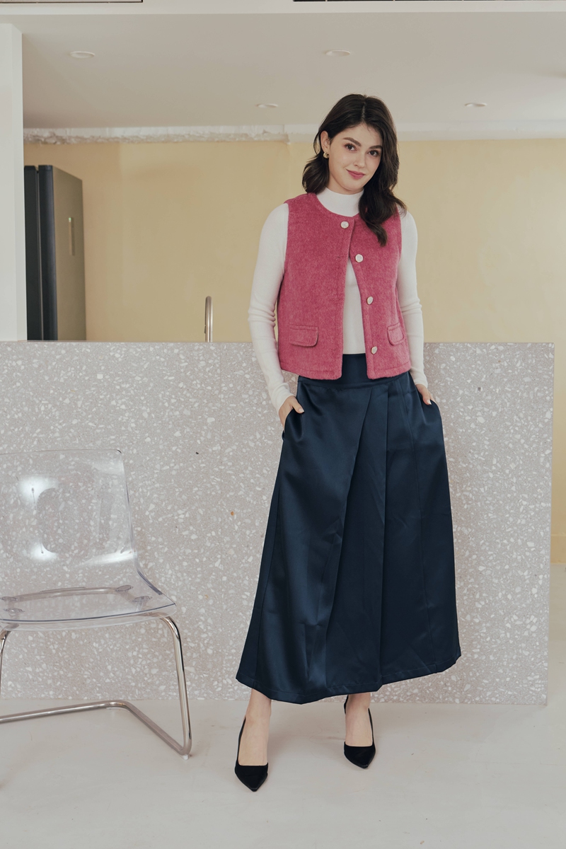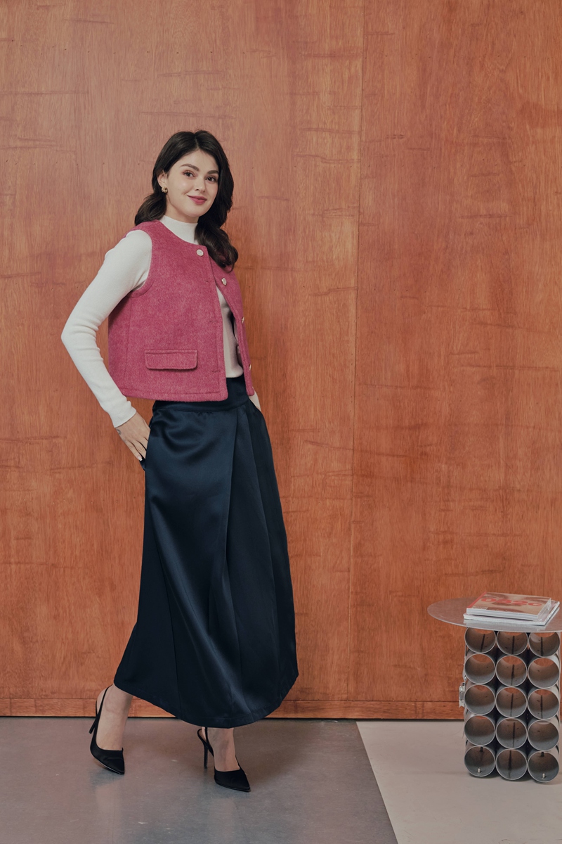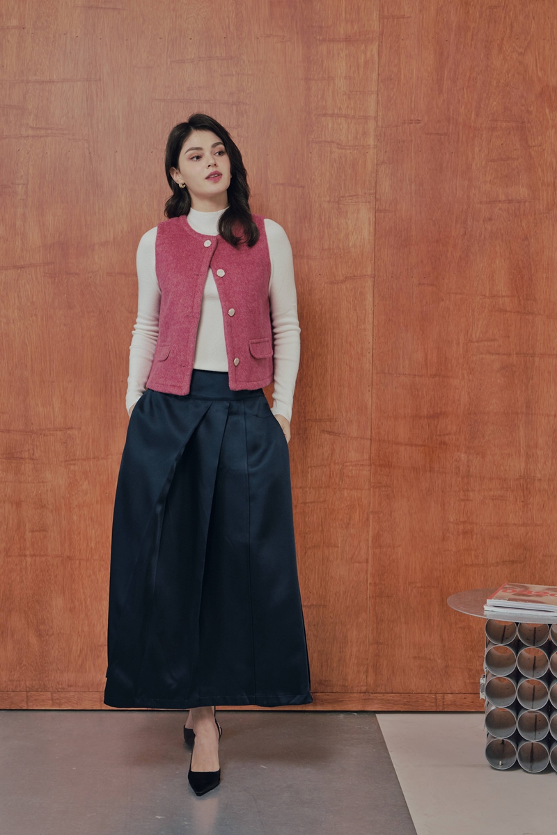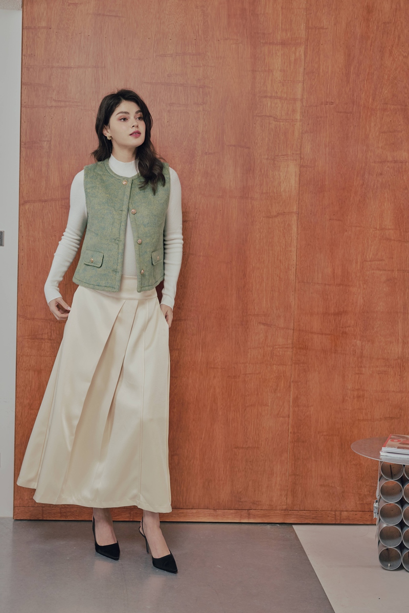法式絲毛緞面半身裙 2色(現貨)
