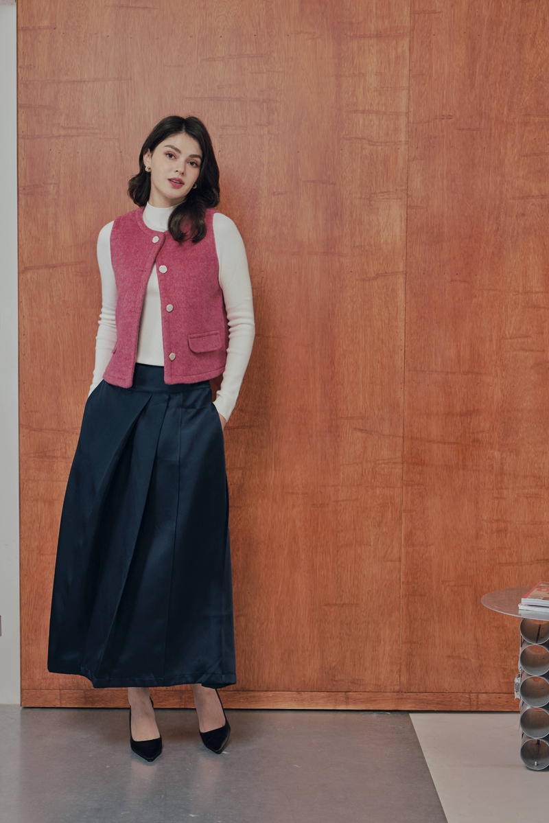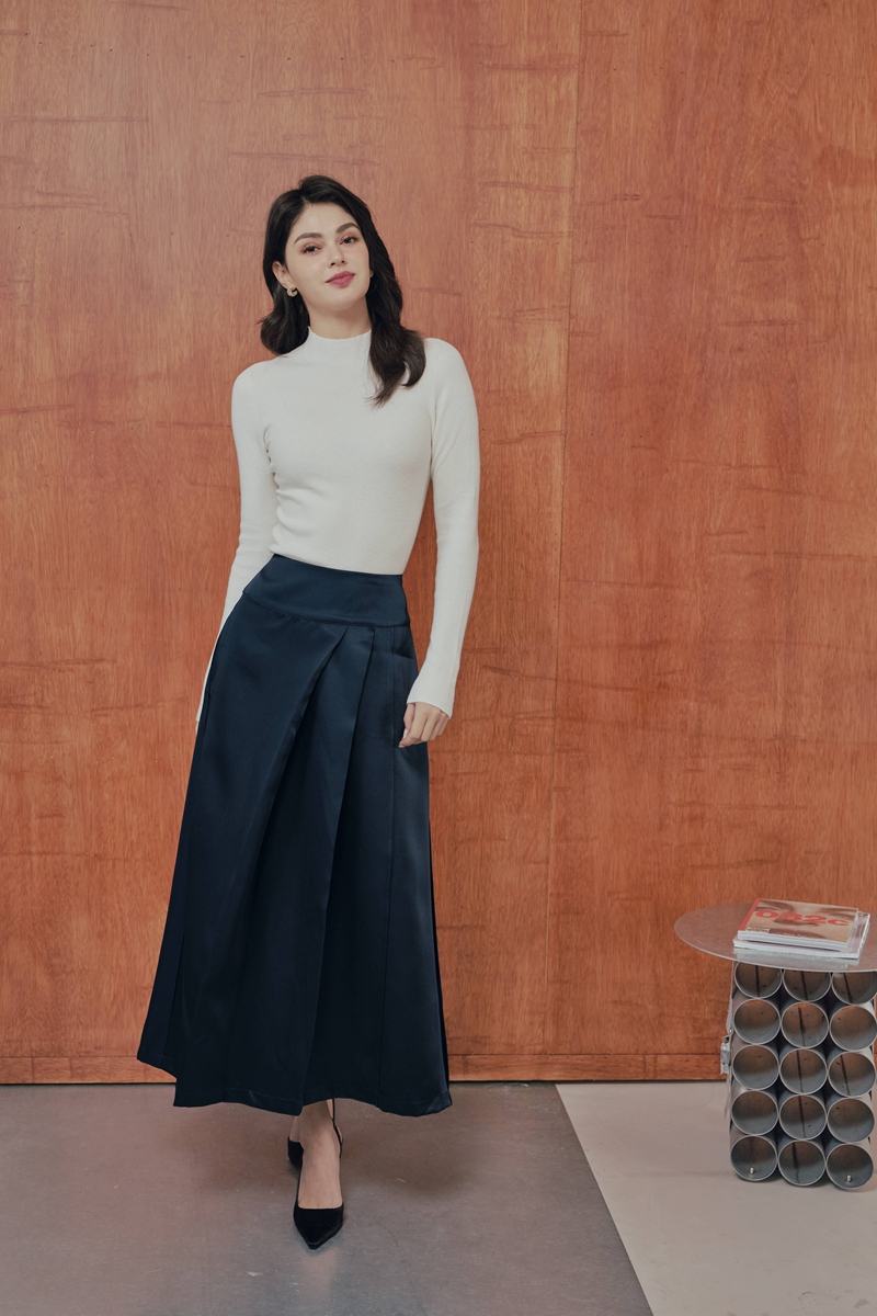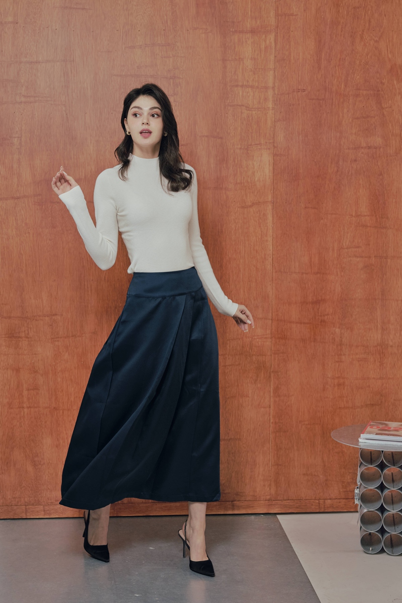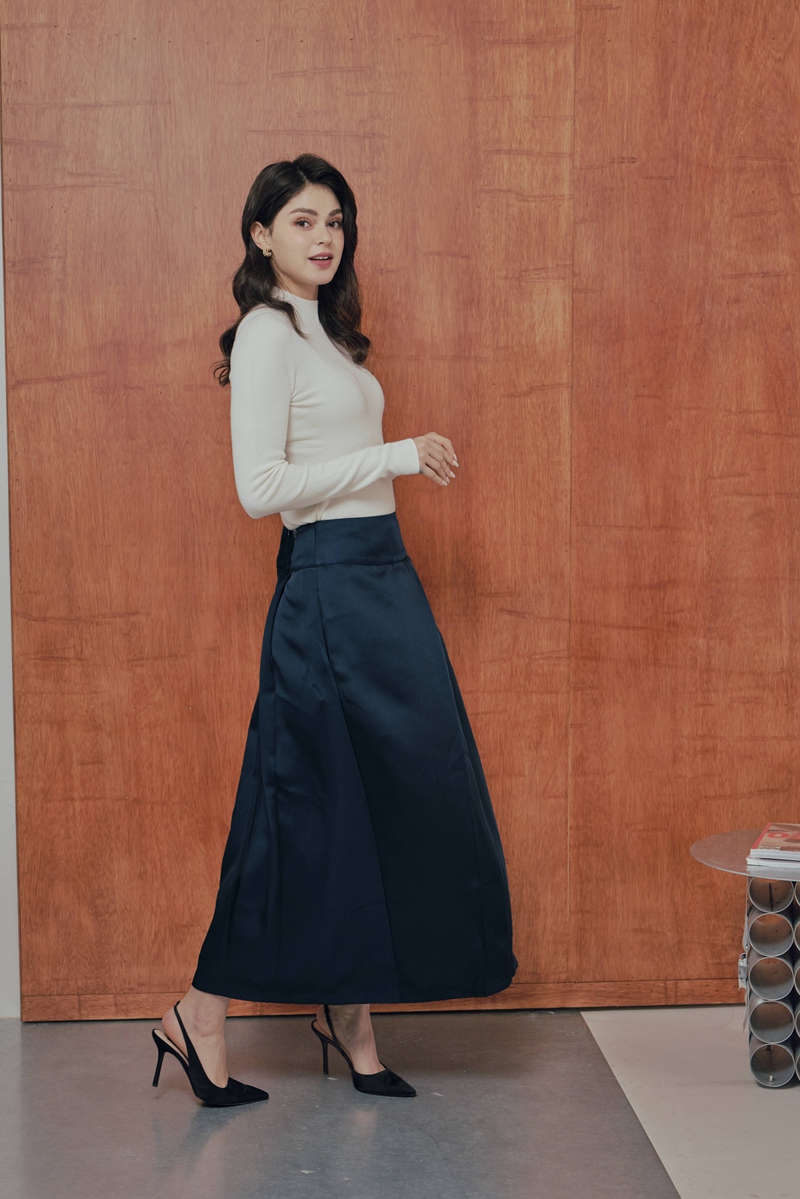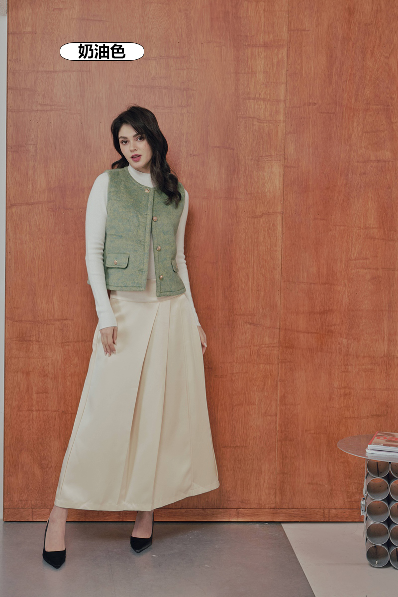 法式絲毛緞面半身裙 2色(現貨)