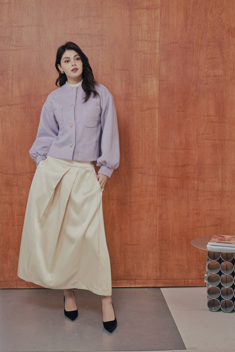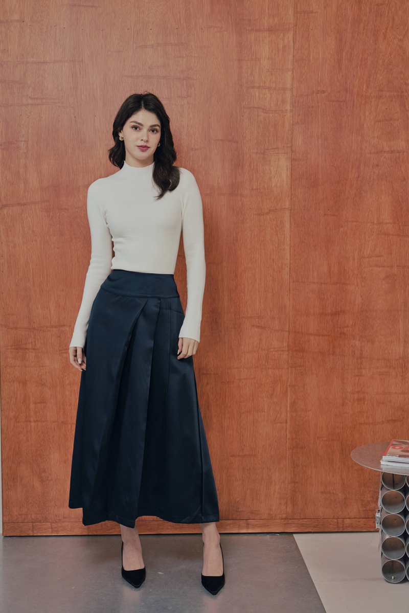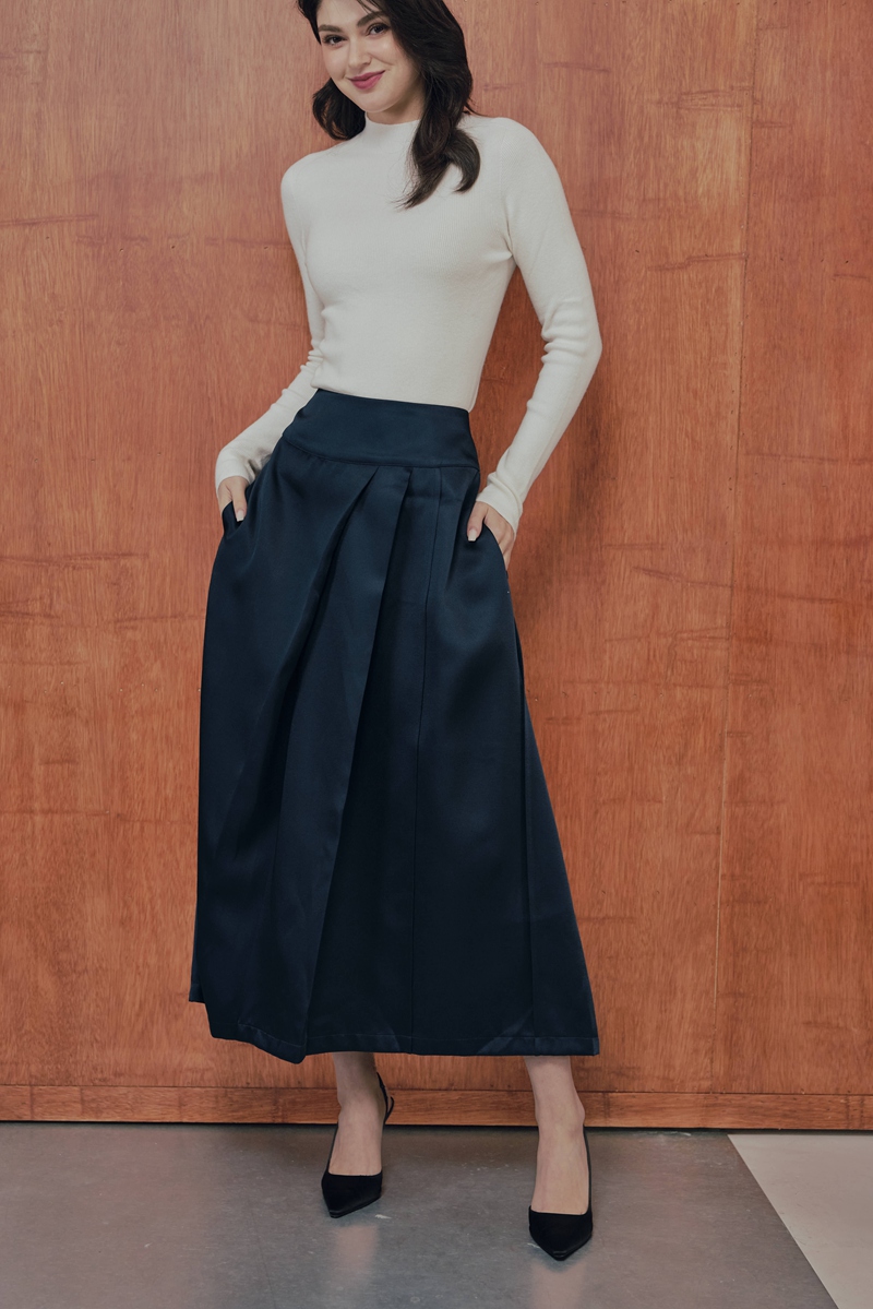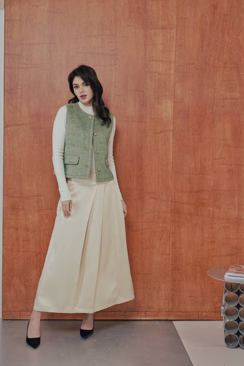 法式絲毛緞面半身裙 2色(現貨)