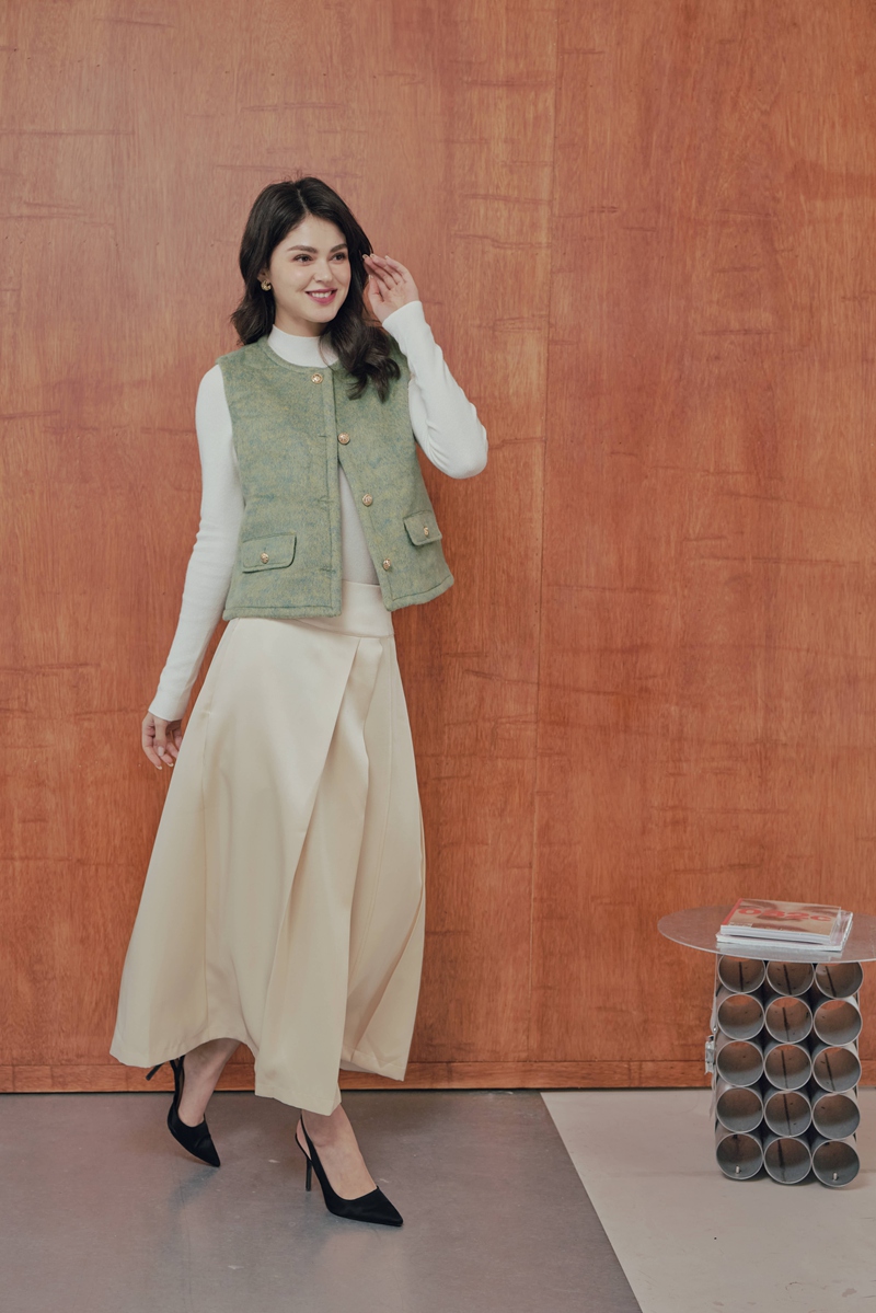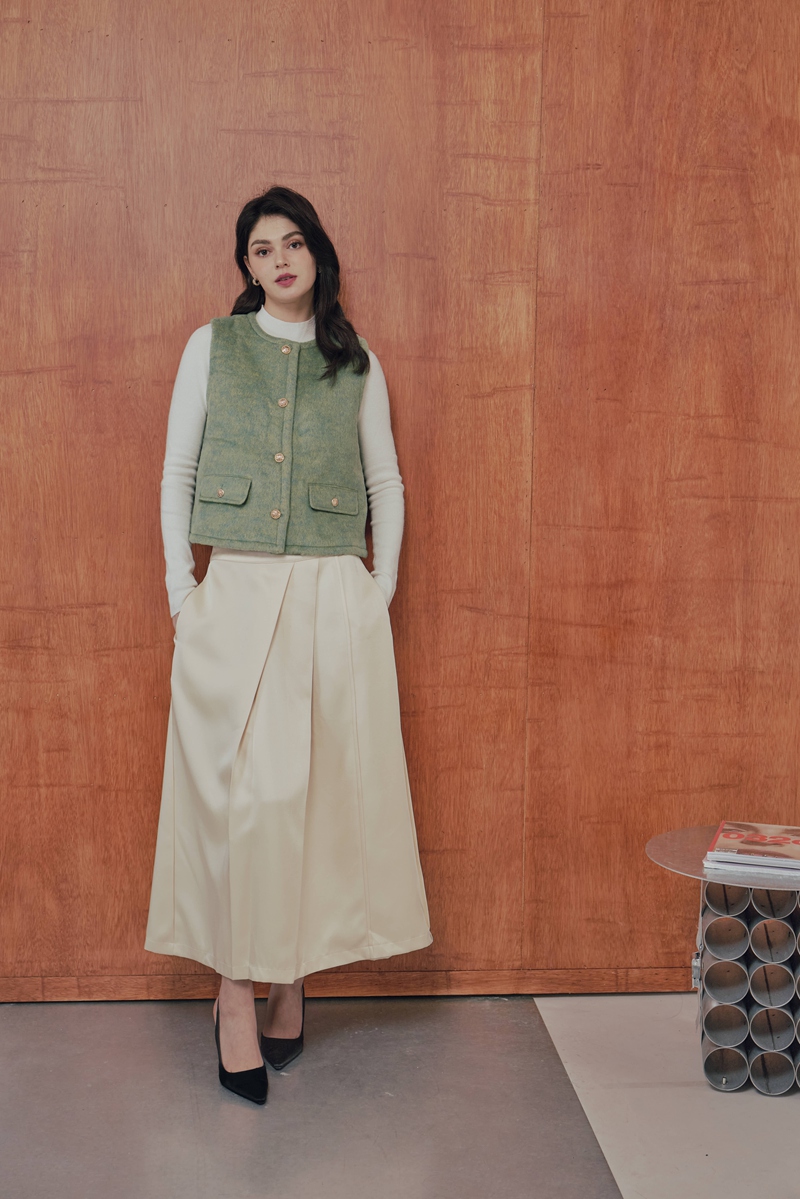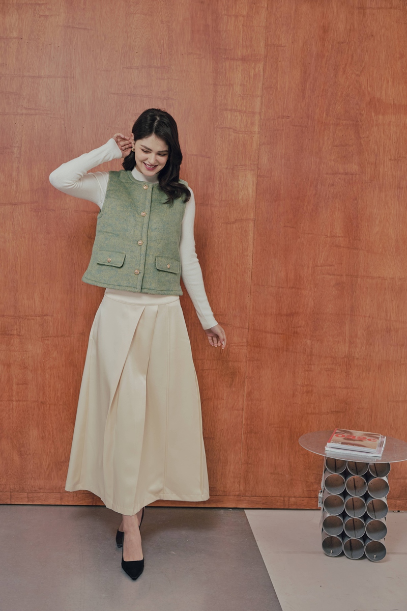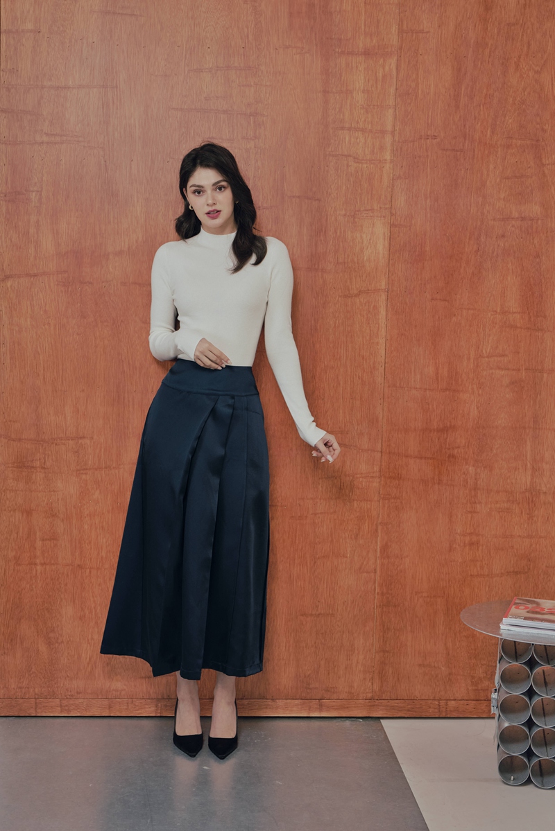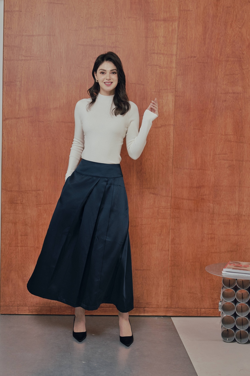 法式絲毛緞面半身裙 2色(現貨)
