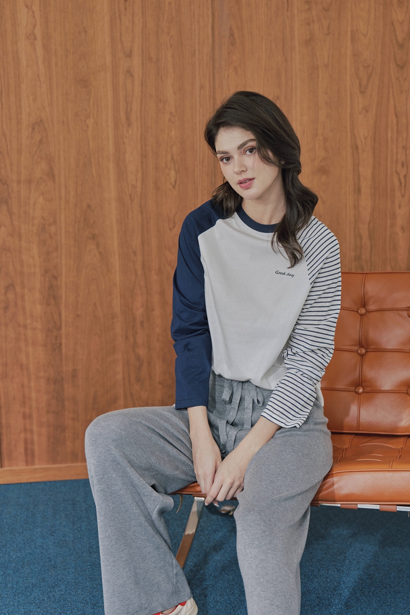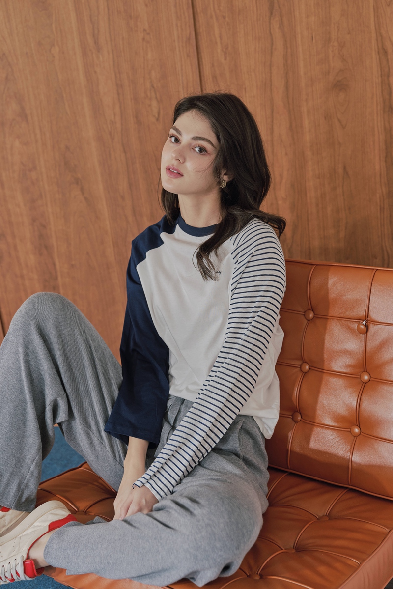 深藍袖棒球長T(現貨)