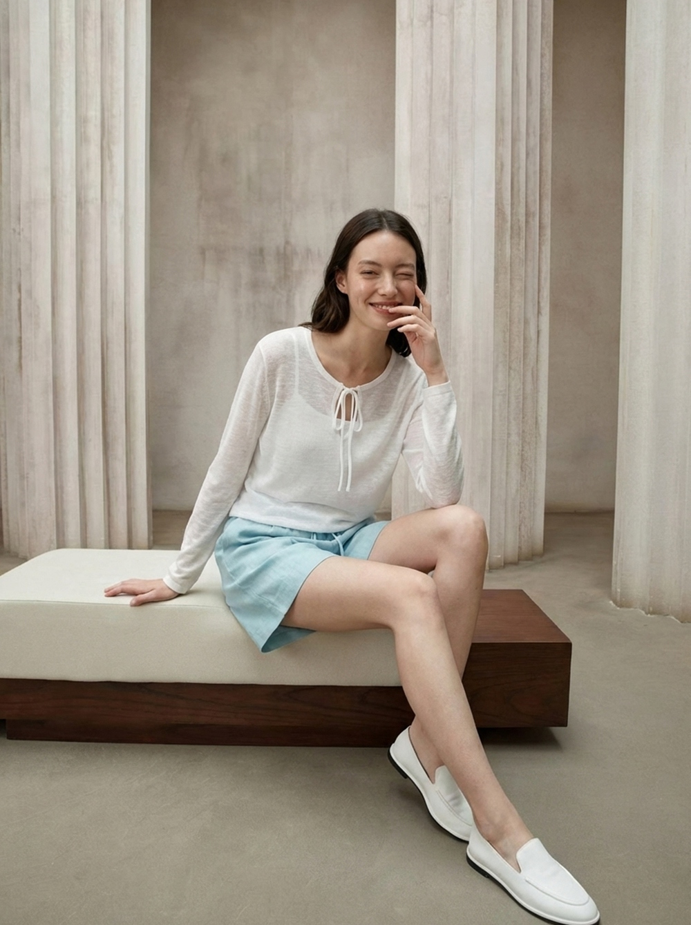 絲麻半透渡假長T 4色 (現貨)