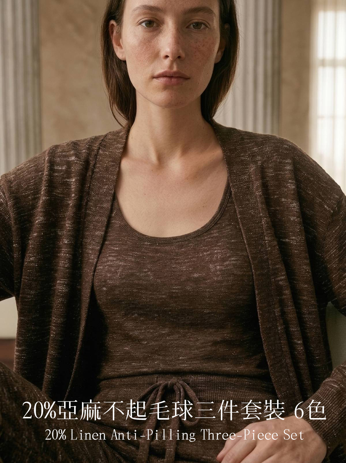 20%亞麻不起毛球三件套裝 6色(現貨)