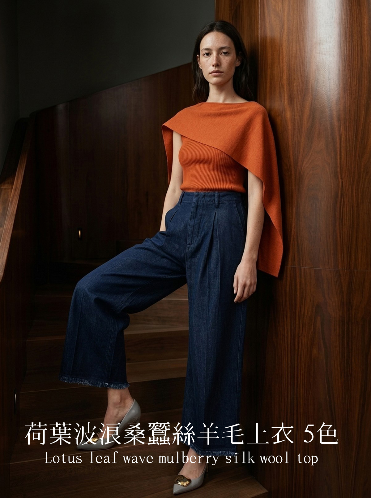 荷葉波浪桑蠶絲羊毛上衣 5色(現貨)