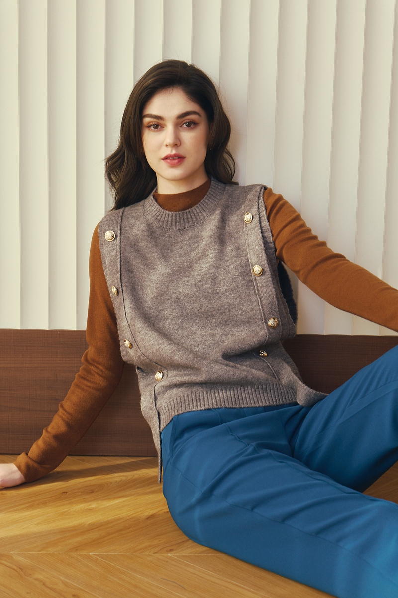 綿羊絨銀釦多色背心 5色(只剩灰/紅現貨)